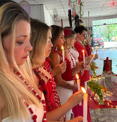 Explore momentos de empoderamento e cura entre mulheres no nosso Sagrado Feminino.